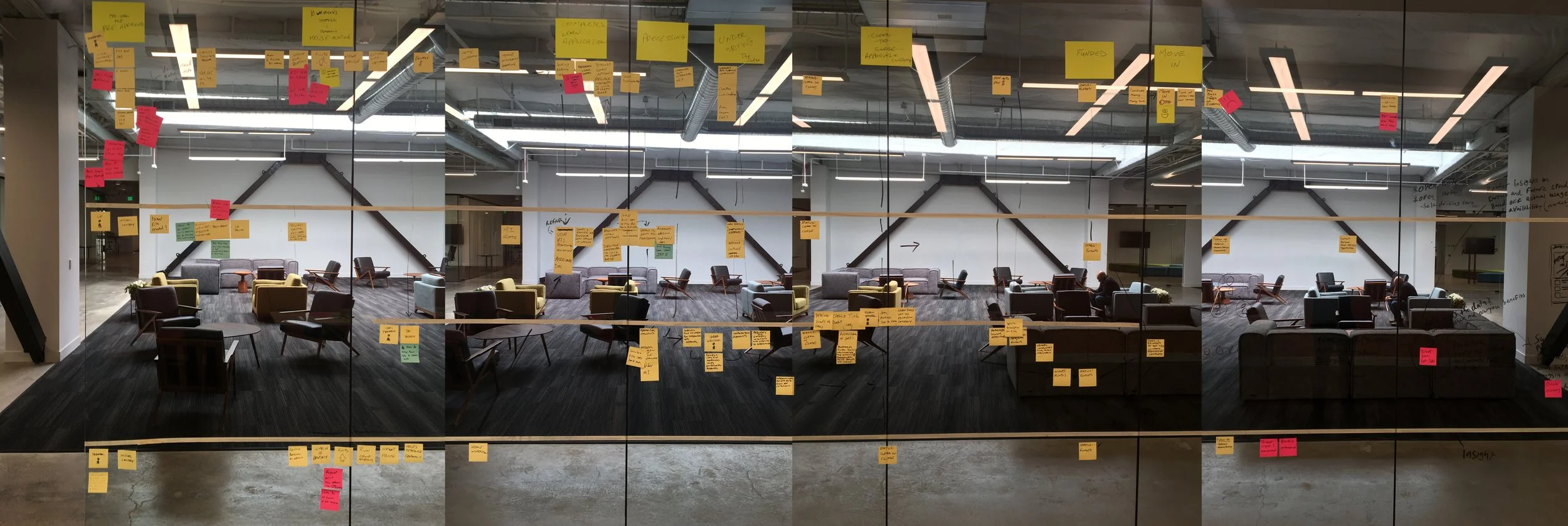 I led a heuristic audit of the entire existing product to identify gaps in what we currently offered. We screen captured, annotated, printed, and displayed the entire product, gaps included, on the wall in the office for the entire company to see and discuss.